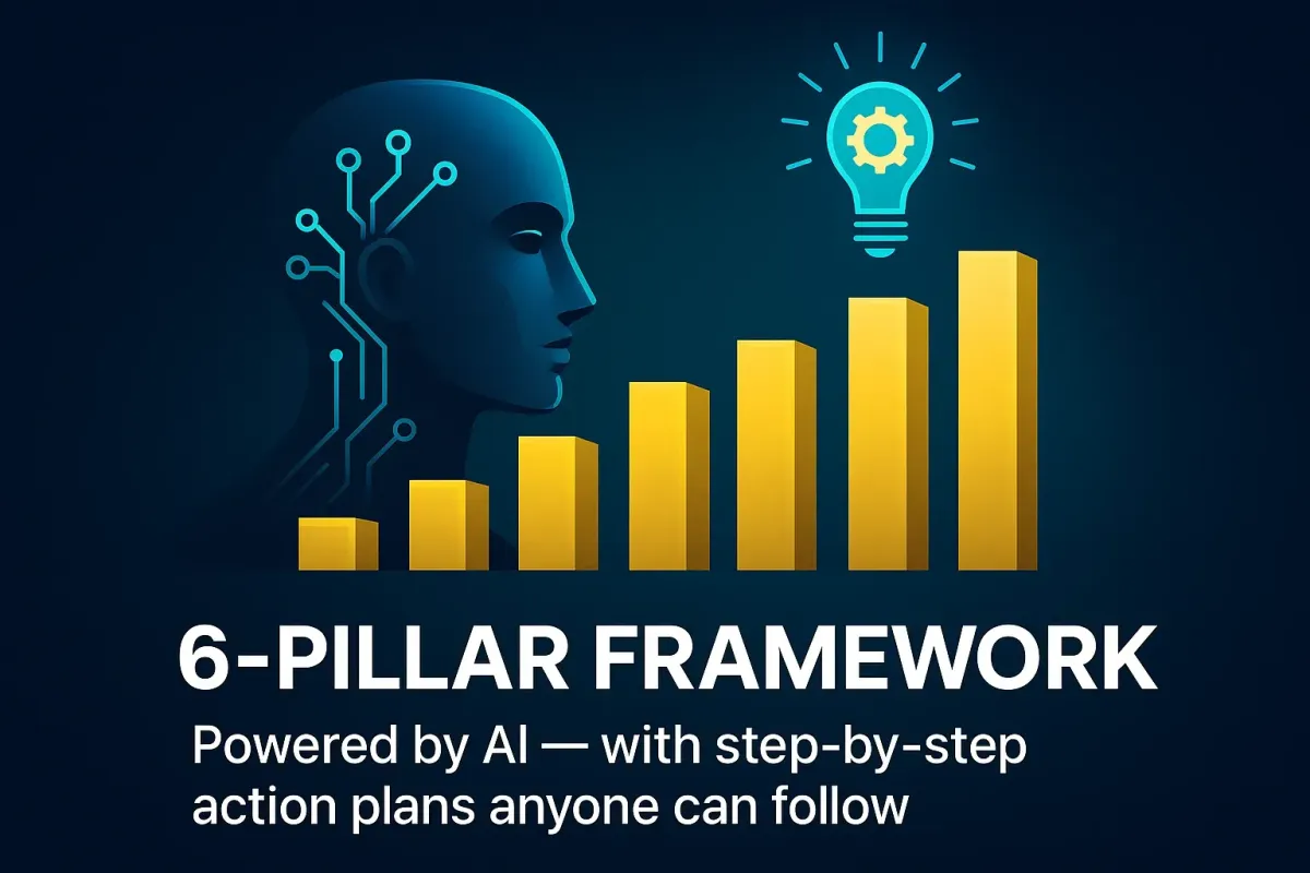 A complete 6-Pillar Framework powered by AI — with step-by-step action plans anyone can follow.